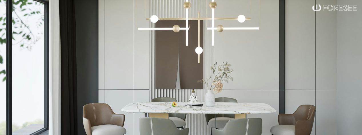 For dining areas, lighting must enhance the meal experience while highlighting the table centerpiece: